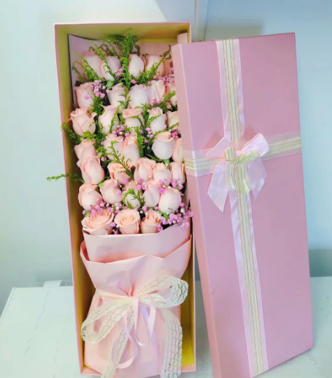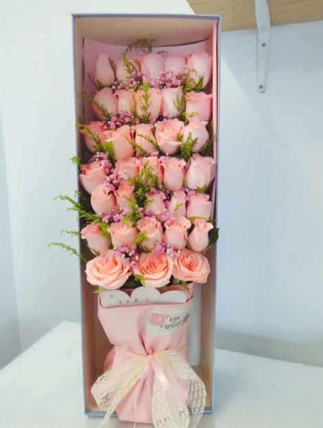 材质: 精选33枝粉玫瑰,满天星黄英搭配