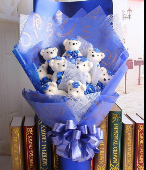 材质: 精选9只小熊公仔,(颜色随机)组成美丽花束