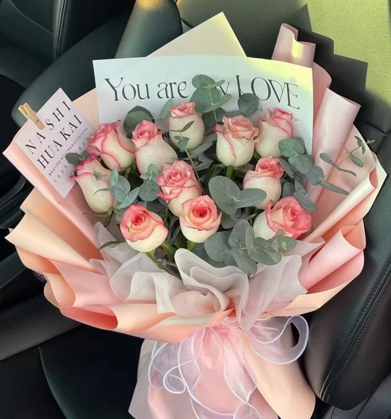 包装: 内衬英文字母包扎纸,外衬粉色欧亚纸