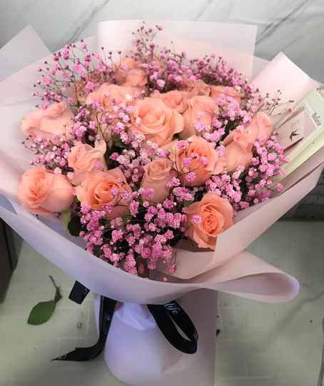 材质: 19枝粉玫瑰,搭配粉色满天星