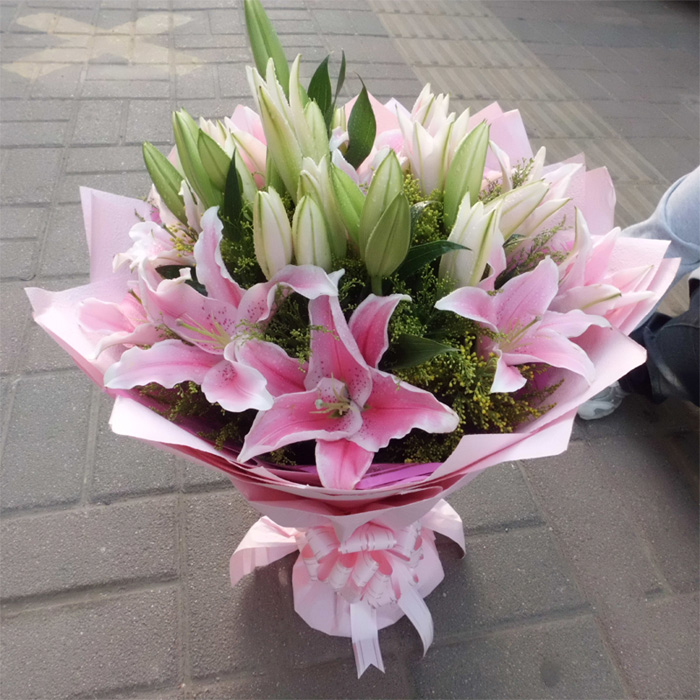其它说明: 由于鲜花包扎各地的花艺师不同,可能在花束的形式和搭配上与图片不完全一致