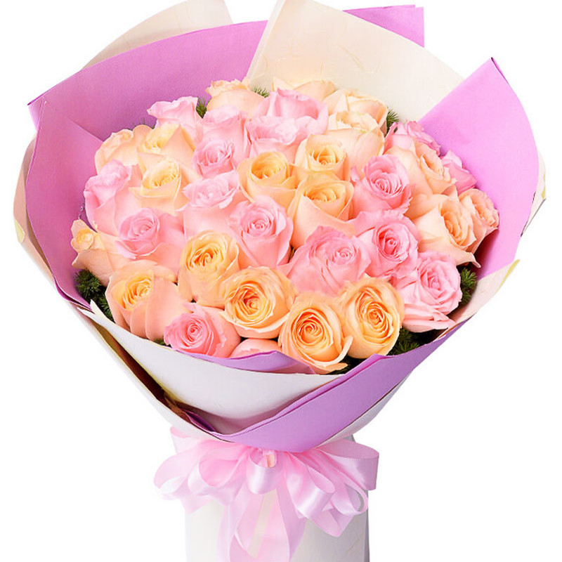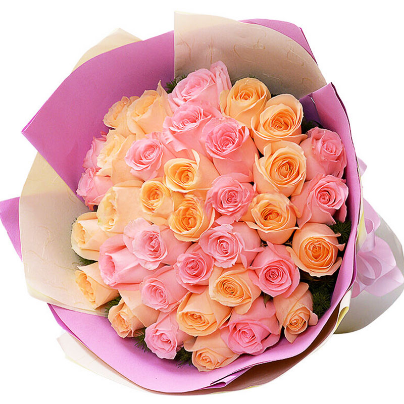 材质: 戴安娜玫瑰17枝 香槟玫瑰16枝 33枝玫瑰混色搭配 绿叶装饰 美丽动人
