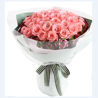 材质: 精选50朵戴安娜粉玫瑰,石竹梅围边