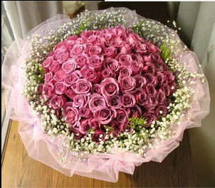 材质: 精选99朵紫玫瑰,黄英满天星围边