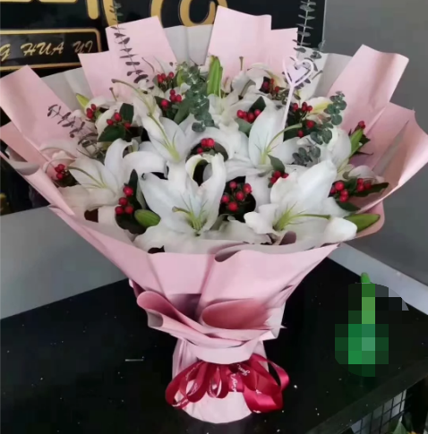 材质: 精选18朵白百合,尤加利叶 红豆搭配