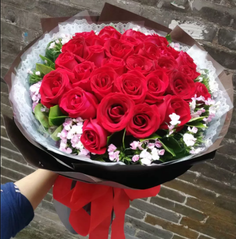 材质: 精选33朵红玫瑰,相思梅 栀子叶围边