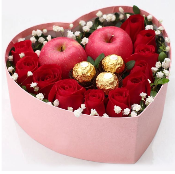 材质: 精选11枝红玫瑰,3颗巧克力,2个苹果。
