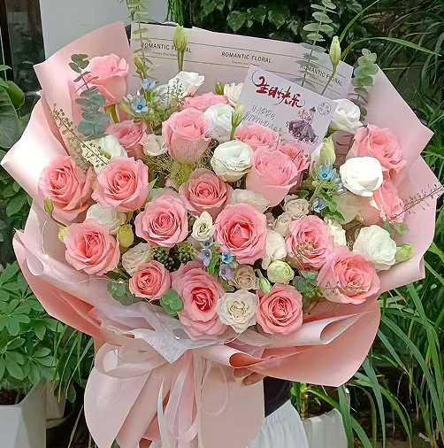 其它说明: 由于鲜花包扎各地的花艺师不同,可能在花束的形式和搭配上与图片不完全一致