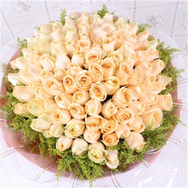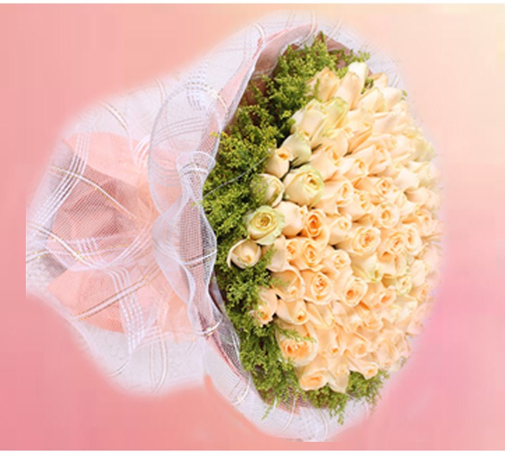 材质 精心挑选66朵昆明香槟玫瑰,搭配美丽黄莺组成美丽花束。