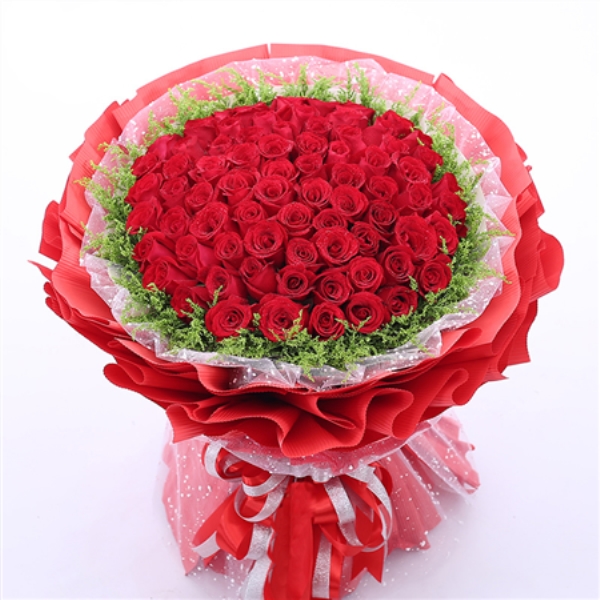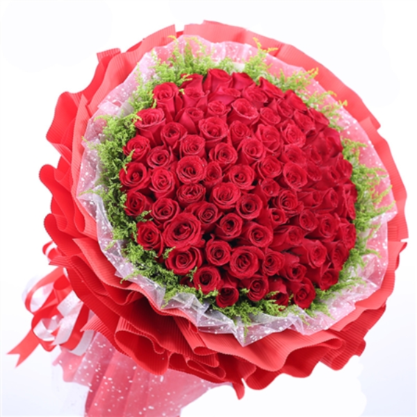 | 材质: | 66枝昆明顶级红玫瑰,黄莺间插 |