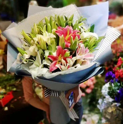 材质: 精选白色 粉色百合一共50朵 黄英搭配