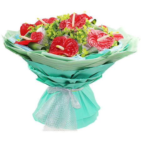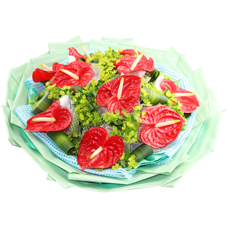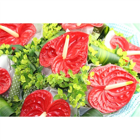 材质: 10只红掌,巴西叶围边 叶上黄金间插