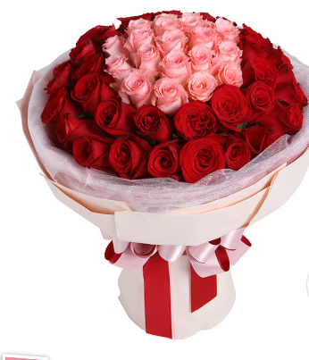 材质: 精选17朵戴安娜玫瑰,33枝红玫瑰围边 一共50朵玫瑰组成美丽图案