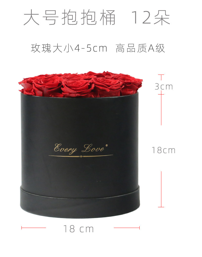 材质: 精选12朵A级玫瑰工艺制程永生花