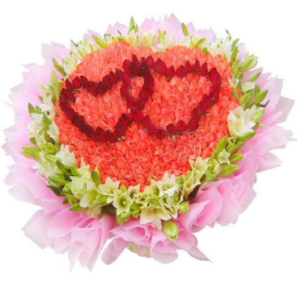 材质: 365枝粉玫瑰(中间红玫瑰包含在内),40枝白百合绿叶