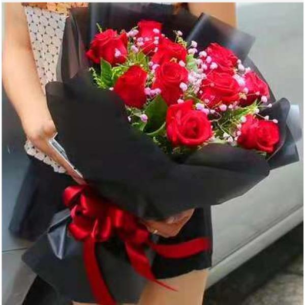 材质: 精选11枝红玫瑰,粉色满天星,绿叶搭配
