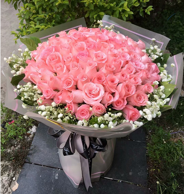 | 材质: | 99朵戴安娜粉玫瑰,满天星搭配 | ||||