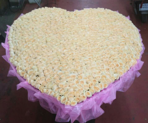 材质: 精选1314朵香槟玫瑰,围成心型。