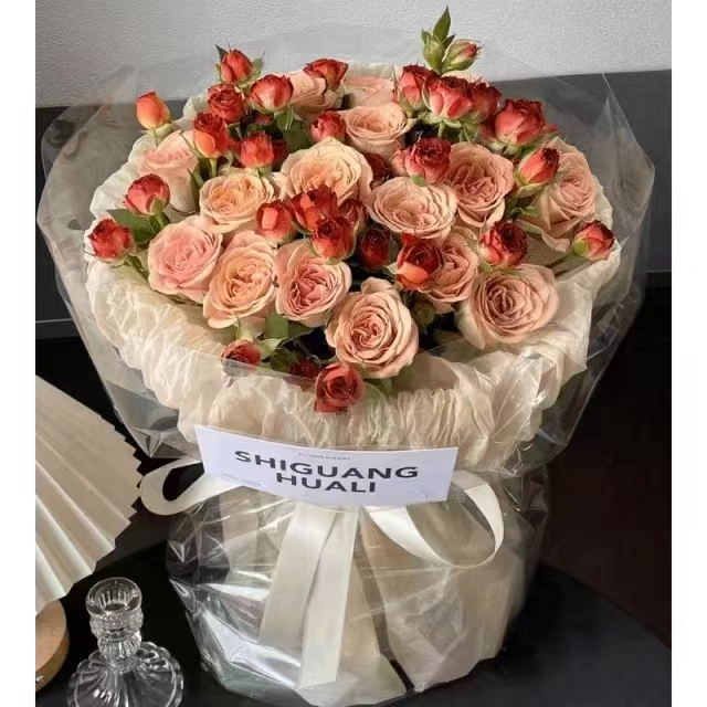 精选19枝卡布奇诺玫瑰,5枝多头橙色泡泡