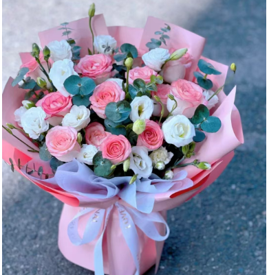 精选11枝戴安娜玫瑰,桔梗,尤加利叶搭配