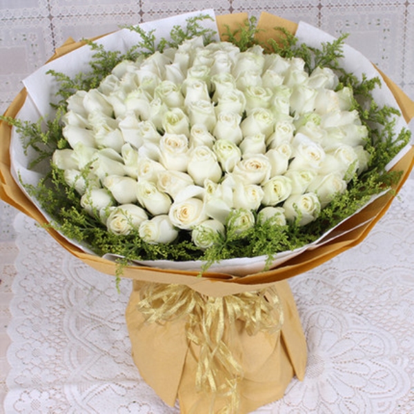 精心挑选66朵白玫瑰,黄莺美丽点缀