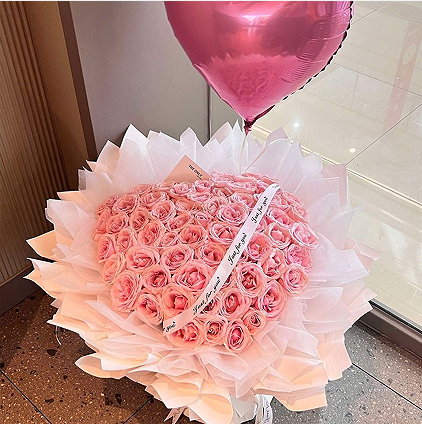 精选66朵粉荔枝玫瑰心形,气球一个