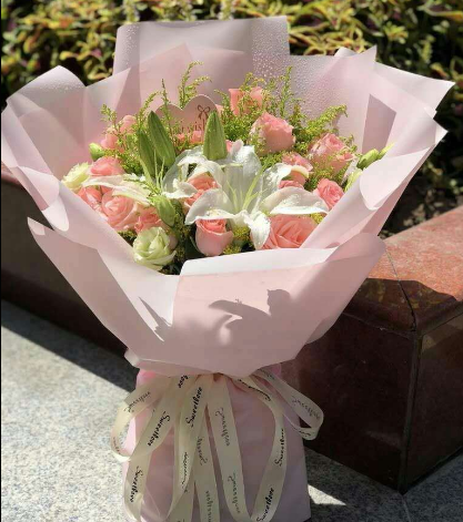 19枝戴安娜,6朵白百合,桔梗,黄英搭配